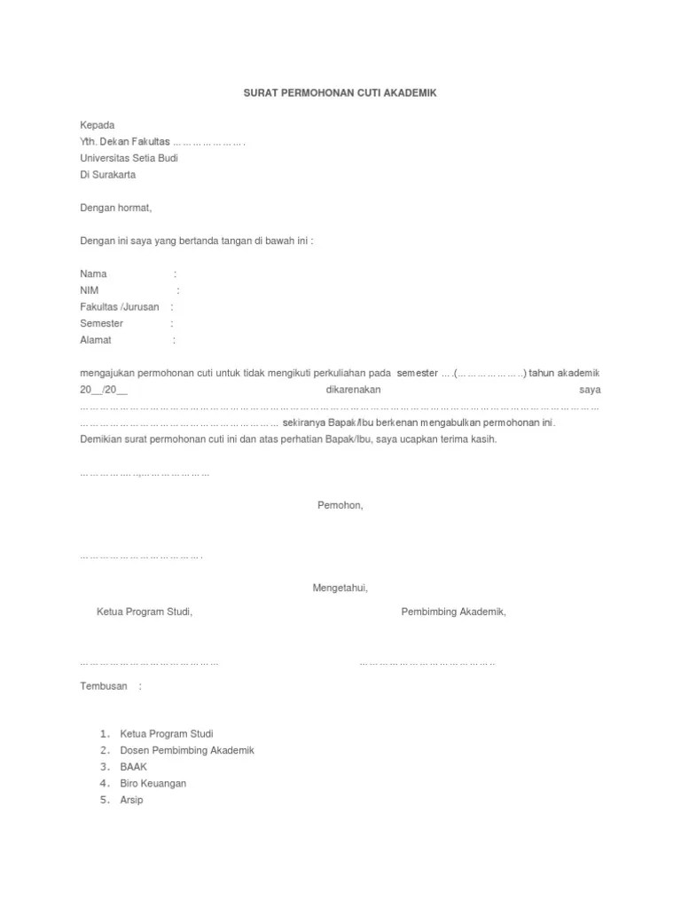 Demikianlah surat permohonan izin cuti akademik ini dibuat. Sebab tak sedikit mahasiswa yang harus cuti. Mahasiswa dapat mengajukan cuti kuliah dengan .